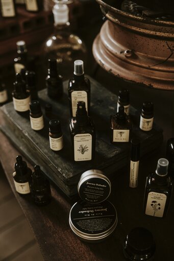 Luego, llevamos estas ofrendas de la tierra a nuestra cocina, donde la magia verdadera comienza. A través de antiguas técnicas de destilación, maceraciones, oleatos y tinturas, transformamos estos regalos en productos que nutren cuerpo y alma. Este proceso alquímico no solo convierte lo ordinario en extraordinario, sino que también nos permite explorar las profundas inteligencias del reino vegetal.